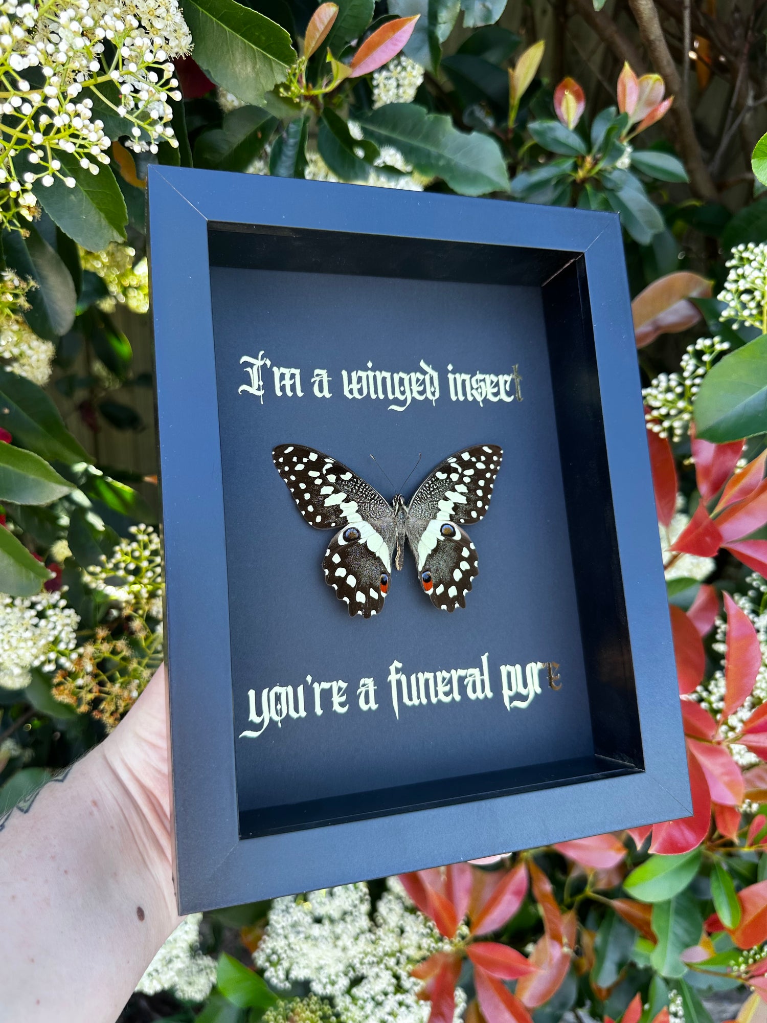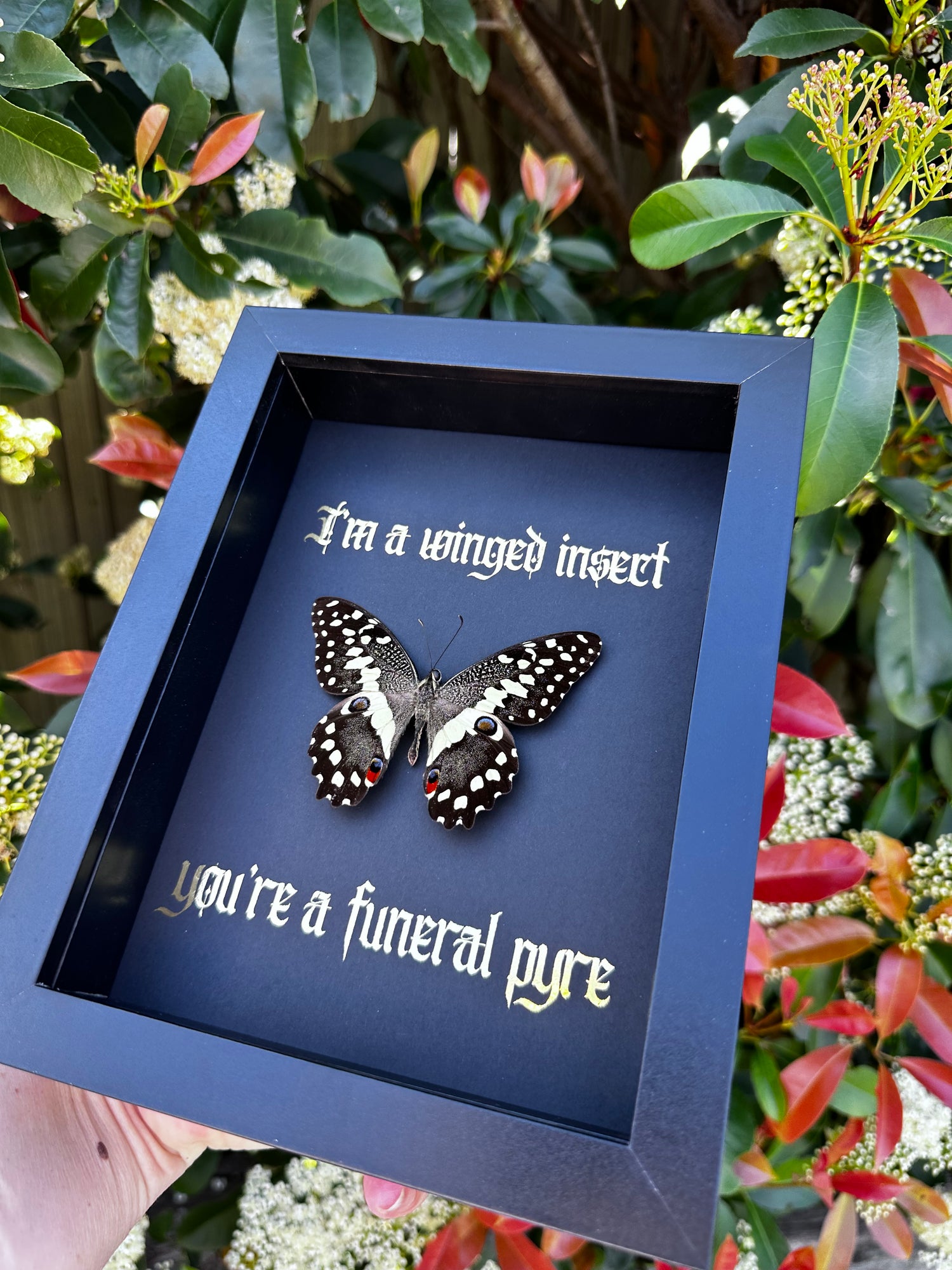 Frame Specs: Black depth frame 20x15cm with a gold foiled sleep token lyrics
