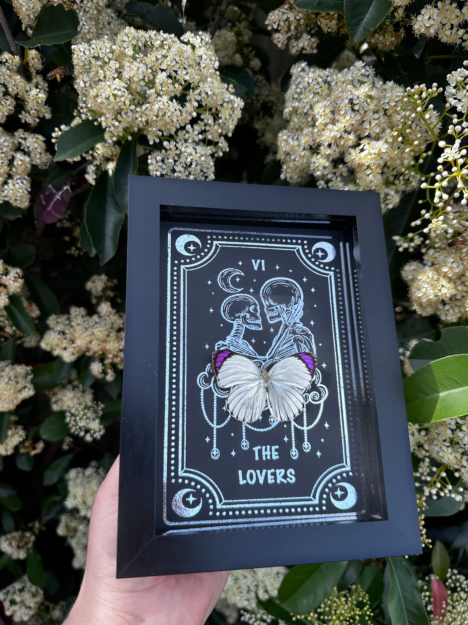 Frame Specs: Black depth frame 5x7” with a foiled The Lovers background